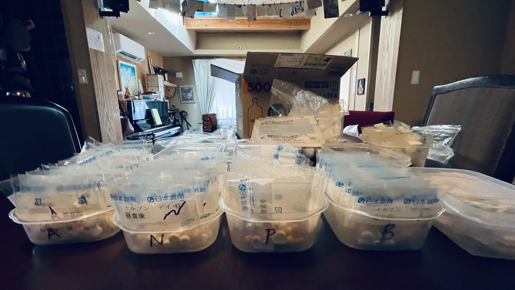 [Fast forward] Sept 4: Today on “tidying up with daveo” comes a variety of tasks involving: figuring 日本語 characters to identify medications and then, a “Laverne and Shirley-esque” (or “I Love Lucy” if you’re older) series of manual tasks, scribbling letters, tearing packets & sorting into bins #mecfs
