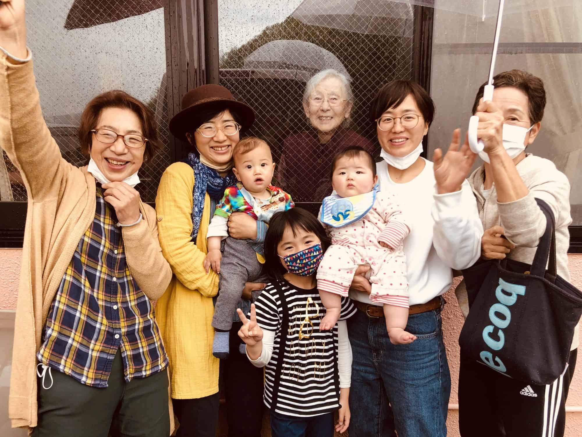 A couple months back, we visited an elder’s home where great grandmother Fujii (mother’s pre-married family name) is sequestered behind glass while meeting two of her great-grandchildren: Ichiro & his 2nd cousin up from Nagasaki.