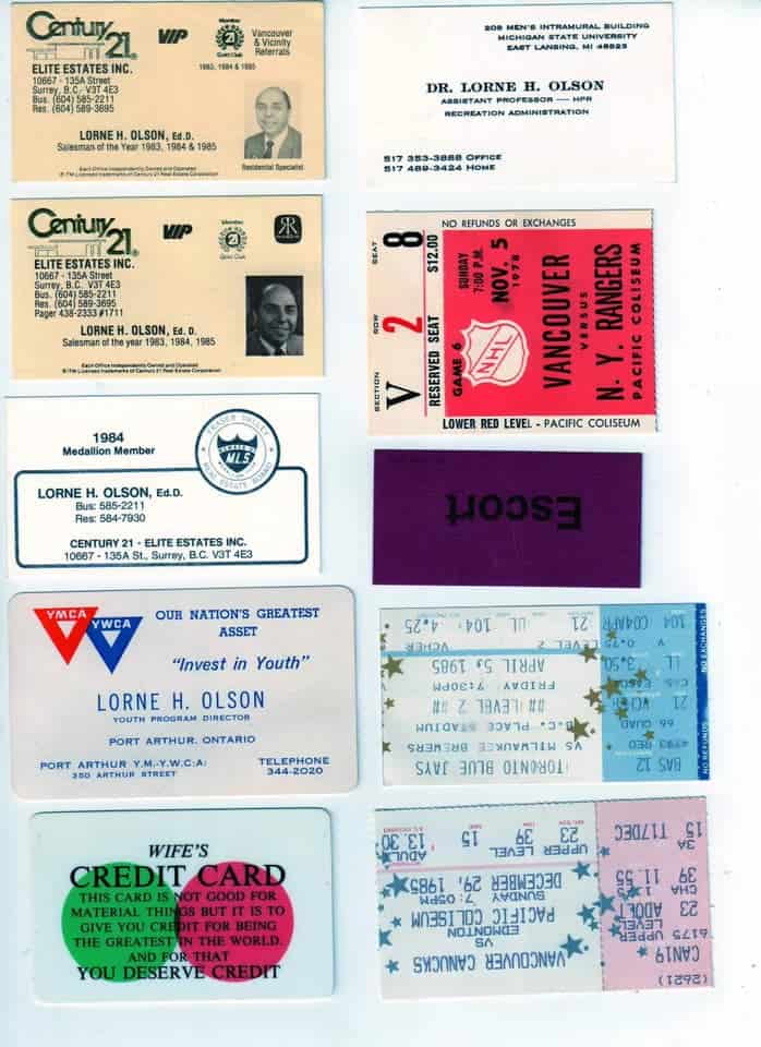 Artifacts from the life of my father Lorne Harold Olson, Ed.D / Realtor / sports fan