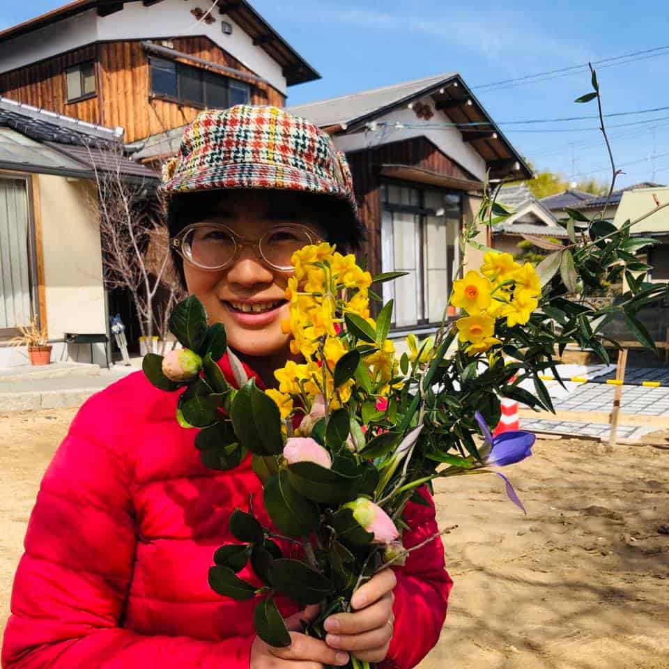 Momma brought flowers from home (daffodils and irises I think) note: construction beginning behind