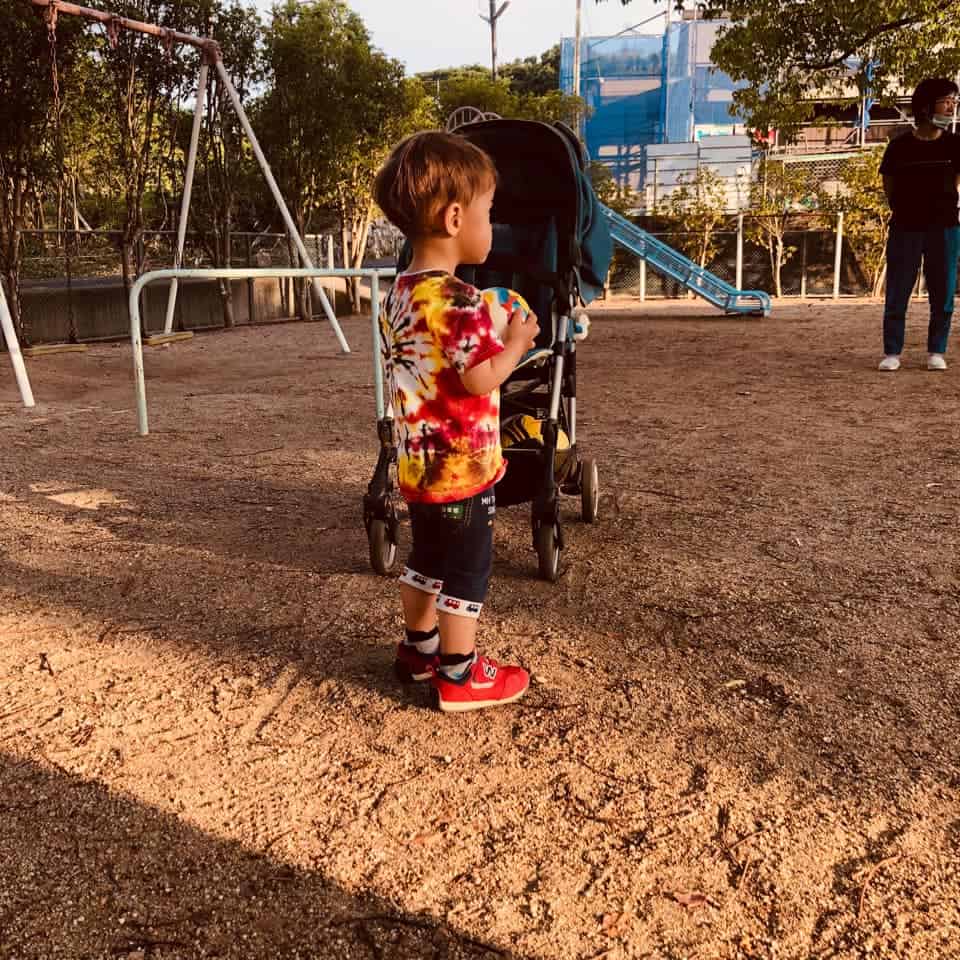 And looooves going to the (albeit rather underwhelming) local parks… In the shot he looks like he’s at a music fest waiting for the next band to come on to see if it’s worthwhile watching or if should just go get a snack instead (in reality, he was watching a baseball practice for the first time).