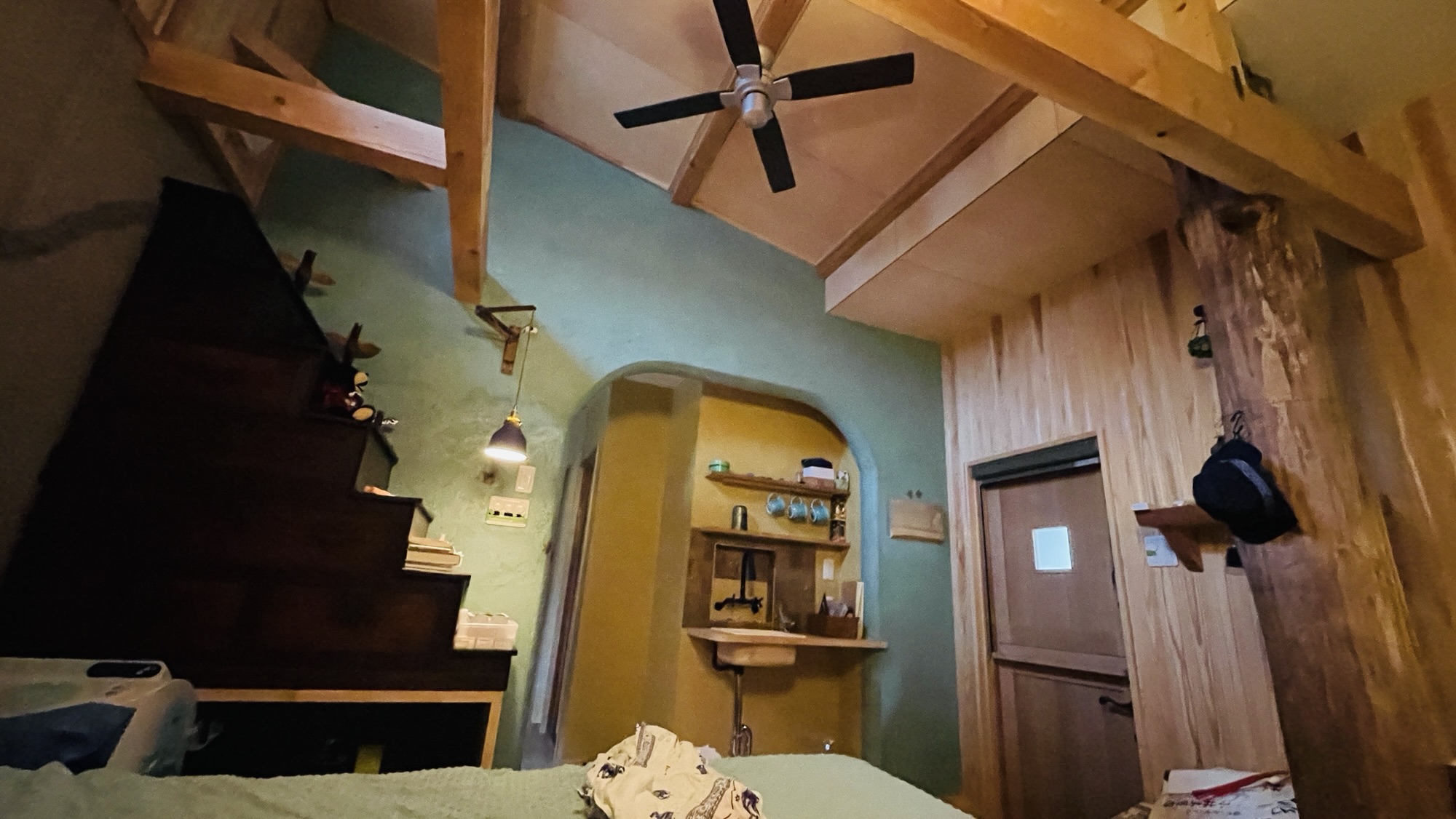 The affectionate name for the new addition to our tiny but growing cottage, ‘the caboose’ is self-designed & custom-built room insulated with sheep wool and hemp, an earth wall, ancient shrine tree, various hardwoods, a custom Dutch door — and now the three of us sleeping cozy, with my medications stored in a Taishō-era kaidandansu, and even a mini tea/coffee station.