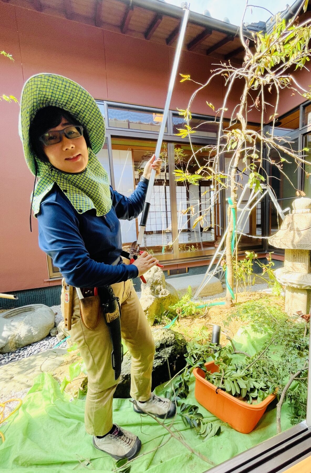 The result of over a decade of running her own arborist and landscape design business following her university studies, followed by a very challenging series of written and practical exams – including a week in the forest in Ibaraki – to achieve a designation which allows her to tend to historic trees at shrines, temples, and gardens. all while doing “everything else” that she does from singing to tea to keeping our whole universe rotating, and taking care of loads of clients gardens, all while studying everything from fungi and bacteria to land use law and water drainage and species of trees covering a latitude from Hokkaido to Okinawa ~ whew, i & we are so proud of Ryoko sensei Dr. O!