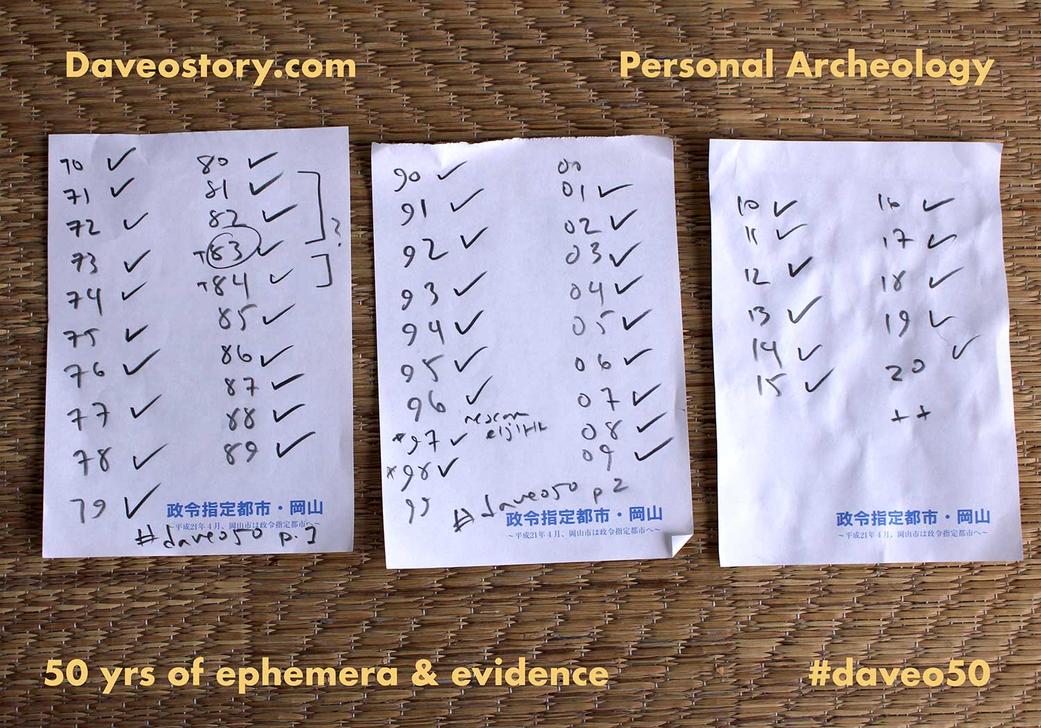 #daveo50 “Personal Archeology” project / 1970~2020 (checklist) #daveo50 “Personal Archaeology” project… All the years checkity, check, check checked / 50 of em (just getting started) Consider perusing at your leisure > you will (likely) be amused Tags: 50th birthday, artifacts, checklist, daveo50, ephemera, itec, personal archeology, project, UW50