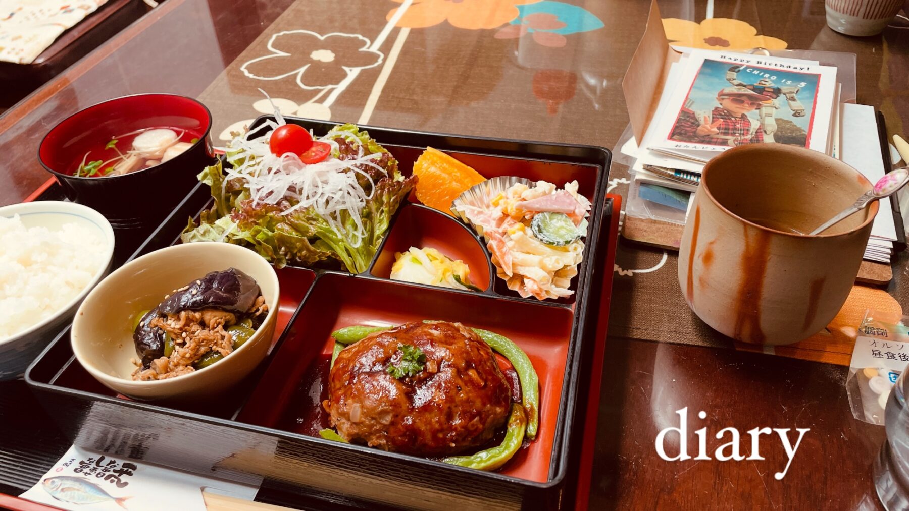 Now secret Café set lunch ¥1200 with side of postcard ¥100 scribbling
