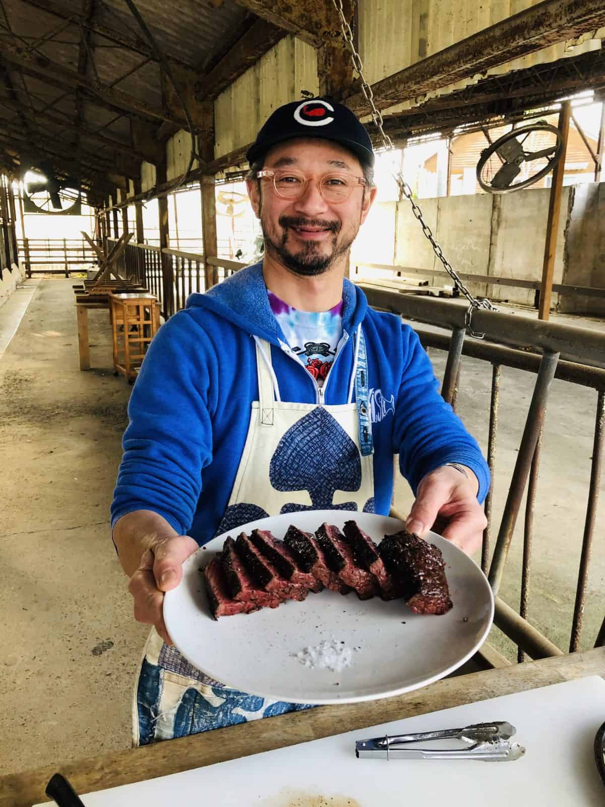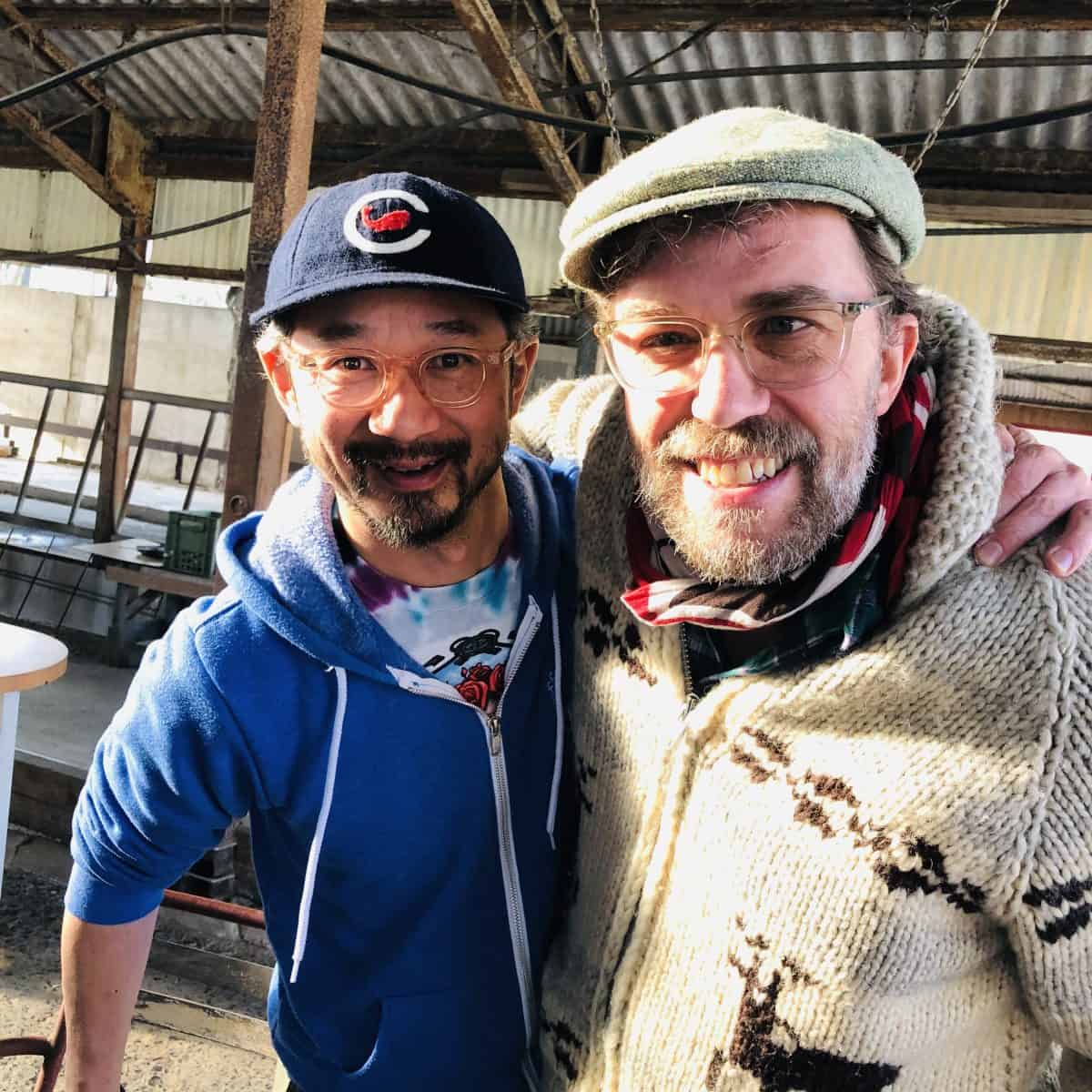 Of course Mac’s meat is on point with sear on outside and rare on inside (if that’s what you like)along with grilled meats, there were big green salads with goat cheese and his absurd prosciutto sorta meatMe & Mac-san / goat-farmer, music aficionado, rustic gourmet, best dude – as seen at Rural Caprine Farm, Okayamagoat milk soft cream by the hardwood barrel fire / solid comboeven better is Ryoko enjoying the goat milk soft cream by the fire!