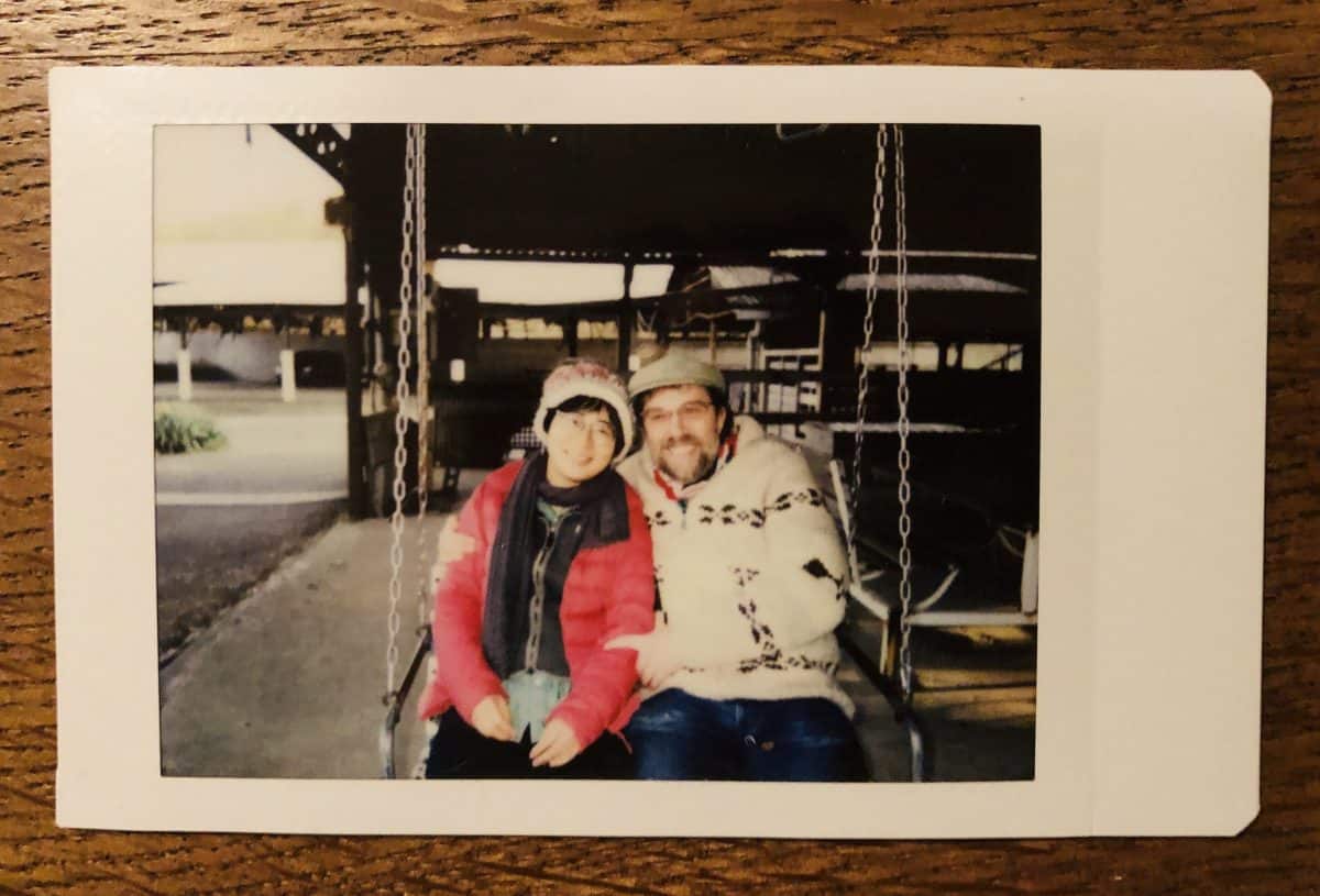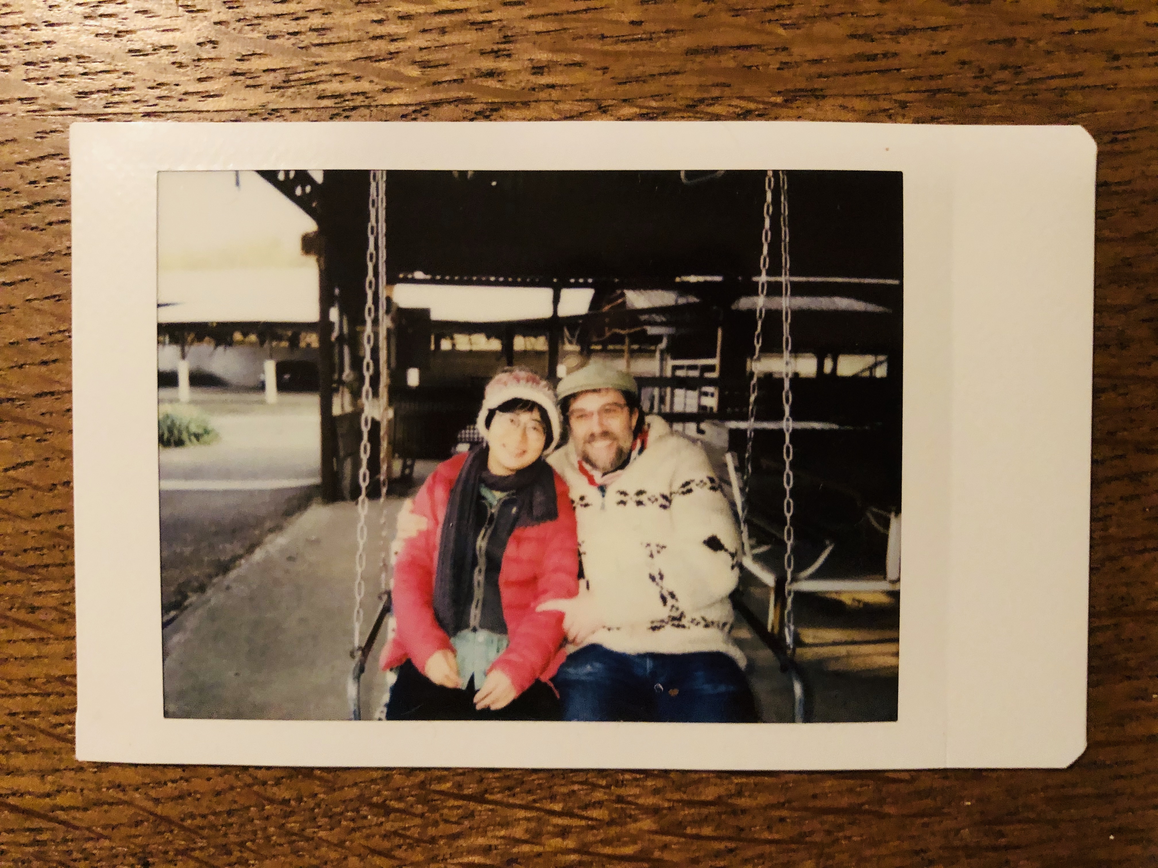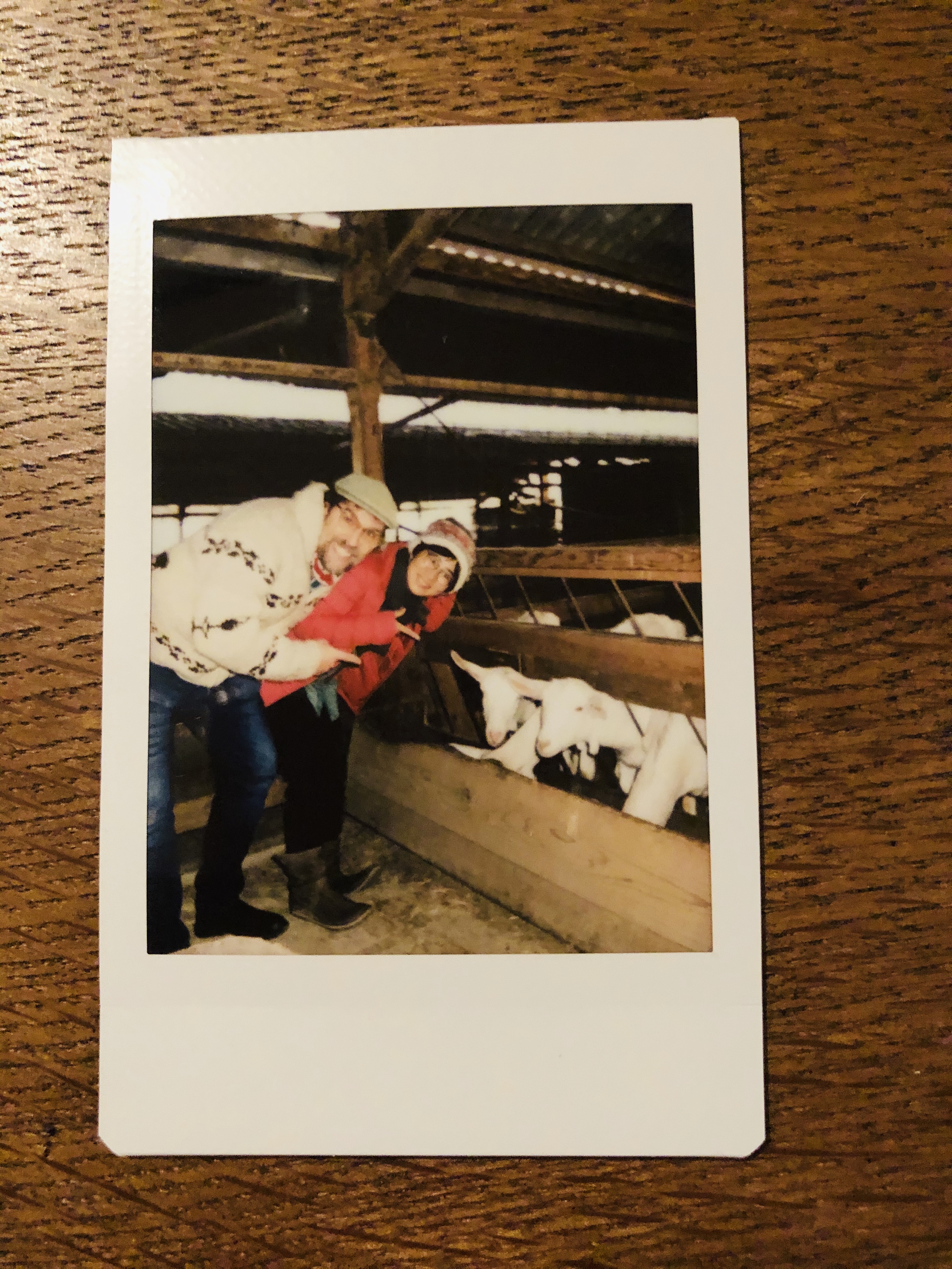 2 more generations of Kobayashis – the remarkable Mom and beautiful daughterMac and I posing in front of my “gallery” of two acrylic paintings i did up for this purposeMac holding hand-written note from Milk Records from Melbourne) received when ordering Courtney Barnett recordsjust a little smooch on the swing with a thrift store legit Cowichan sweaterme cheesing out in front of the paintings – such good memories here for decadessaying hello to the goats – uncle wanted to try the insta-camera too – he’s a photography enthusiast