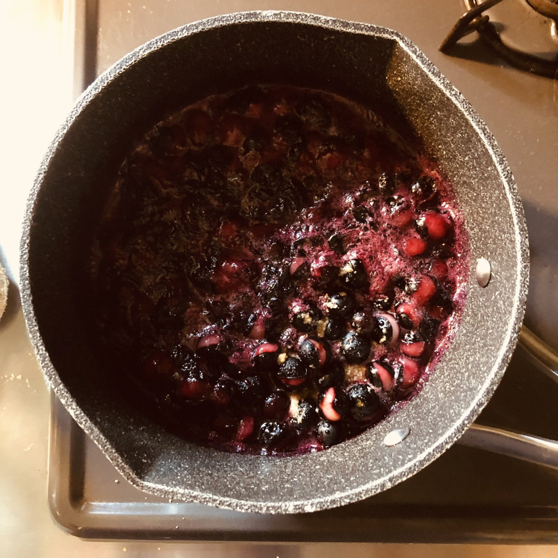 garden: lots coming out of the garden of late (eggplant, tomatoes, cucumbers, turmeric coming up) this morning was blueberries, darling made jam before going to tea ceremony