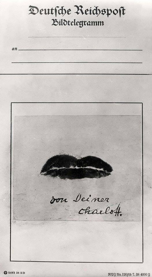 In closing, a kiss telegram from Germany, 1930s, you know those notoriously romantic amorous Weimers.