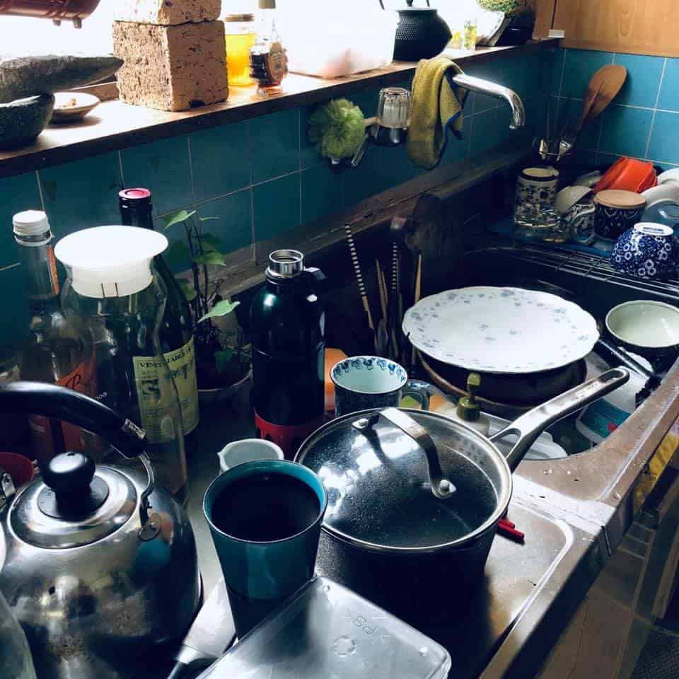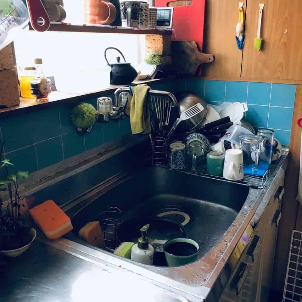 “Celebrating” the Canucks game in the “usual manner”… Washing dishes.