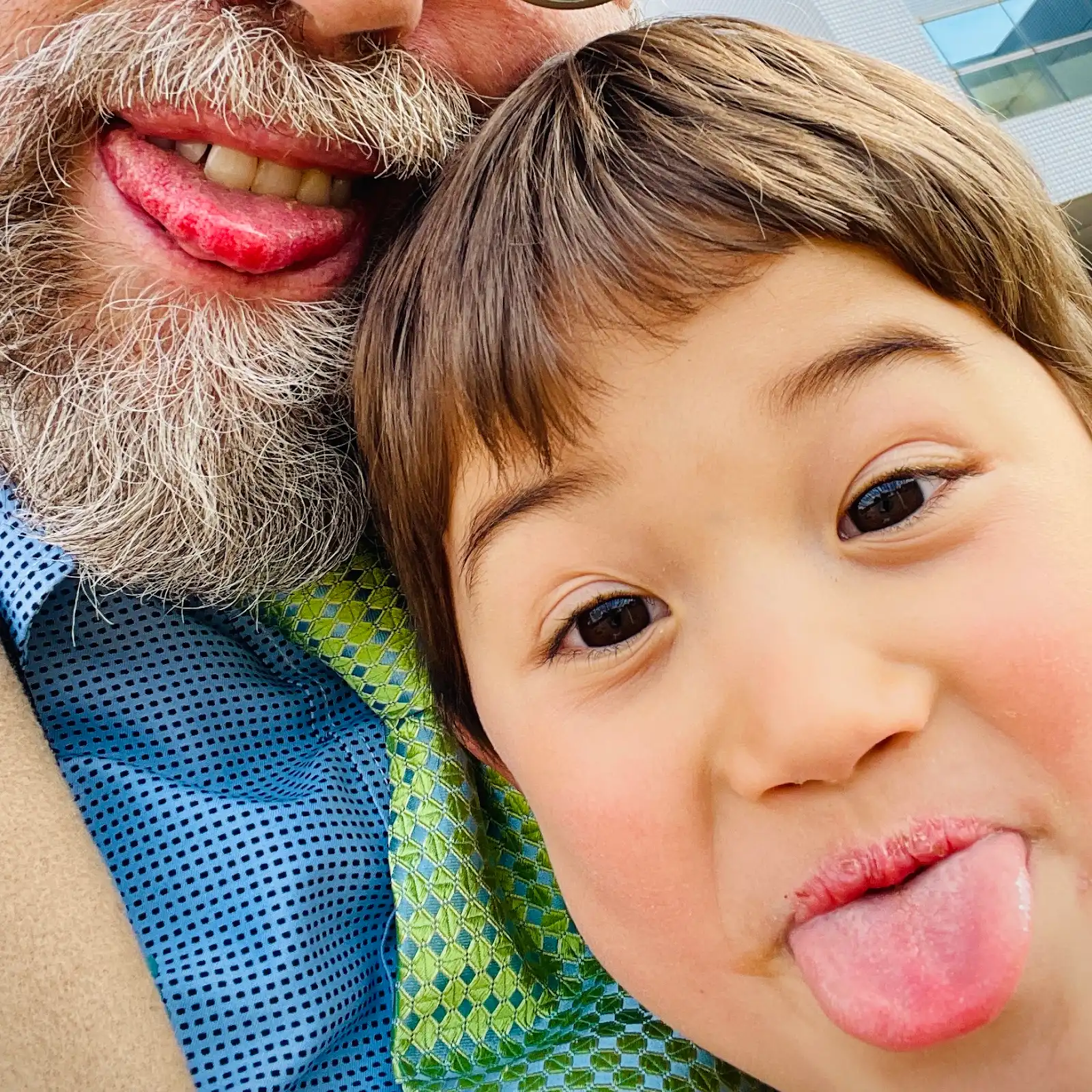& When he sticks his tongue out, ‘you’ stick your tongue out too