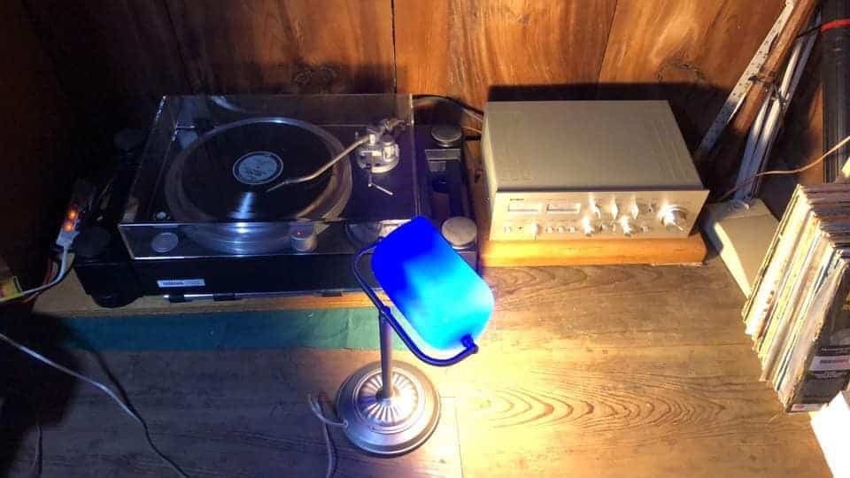 Note: from this photo, rather hard to gauge the *massive* size/heft of this turntable and amp. Next step is reconnect speakers with lower gauge wires trim for appropriate placement tbd / Really need a hi-fi master/buddy to help proper set-up