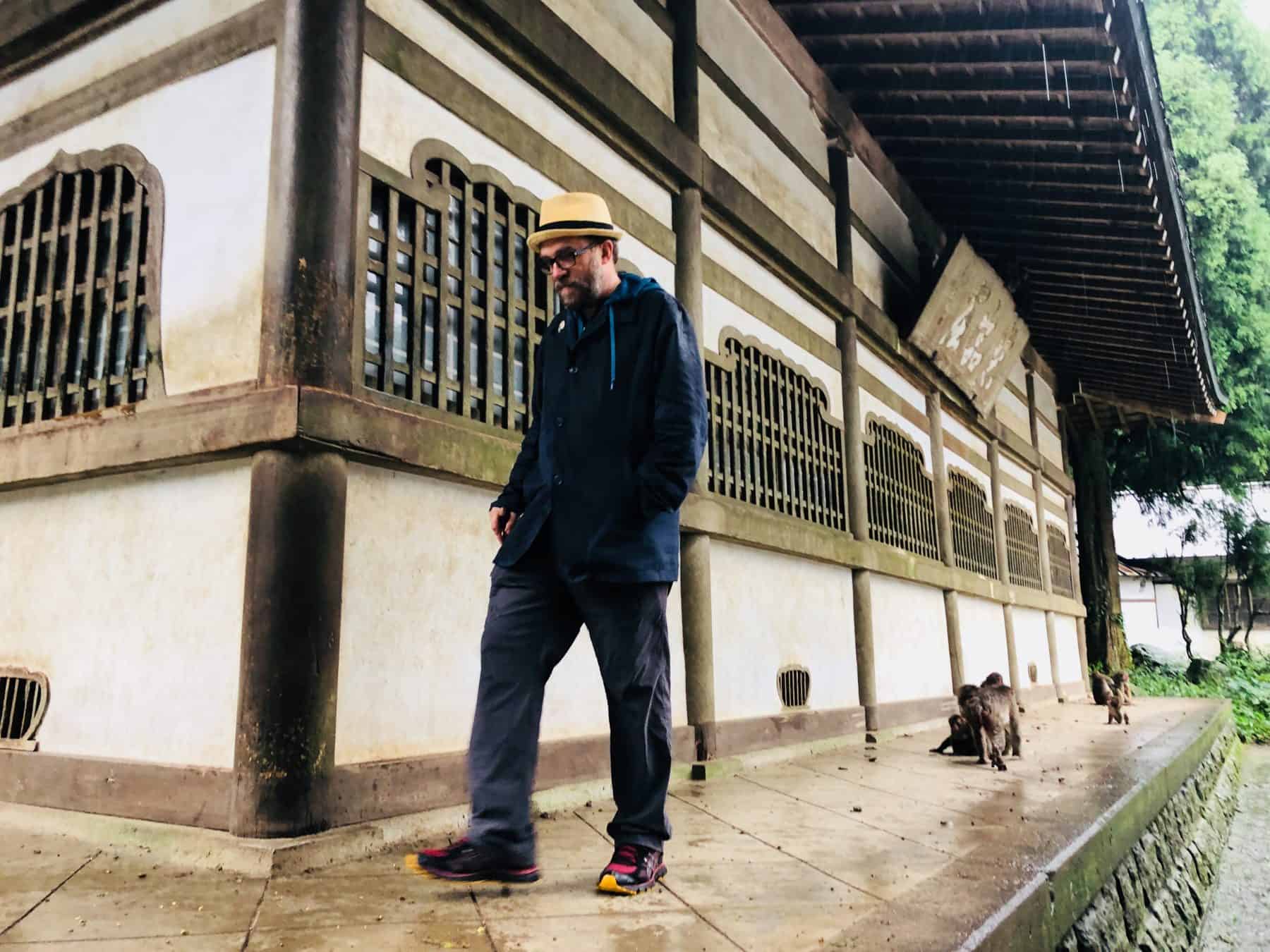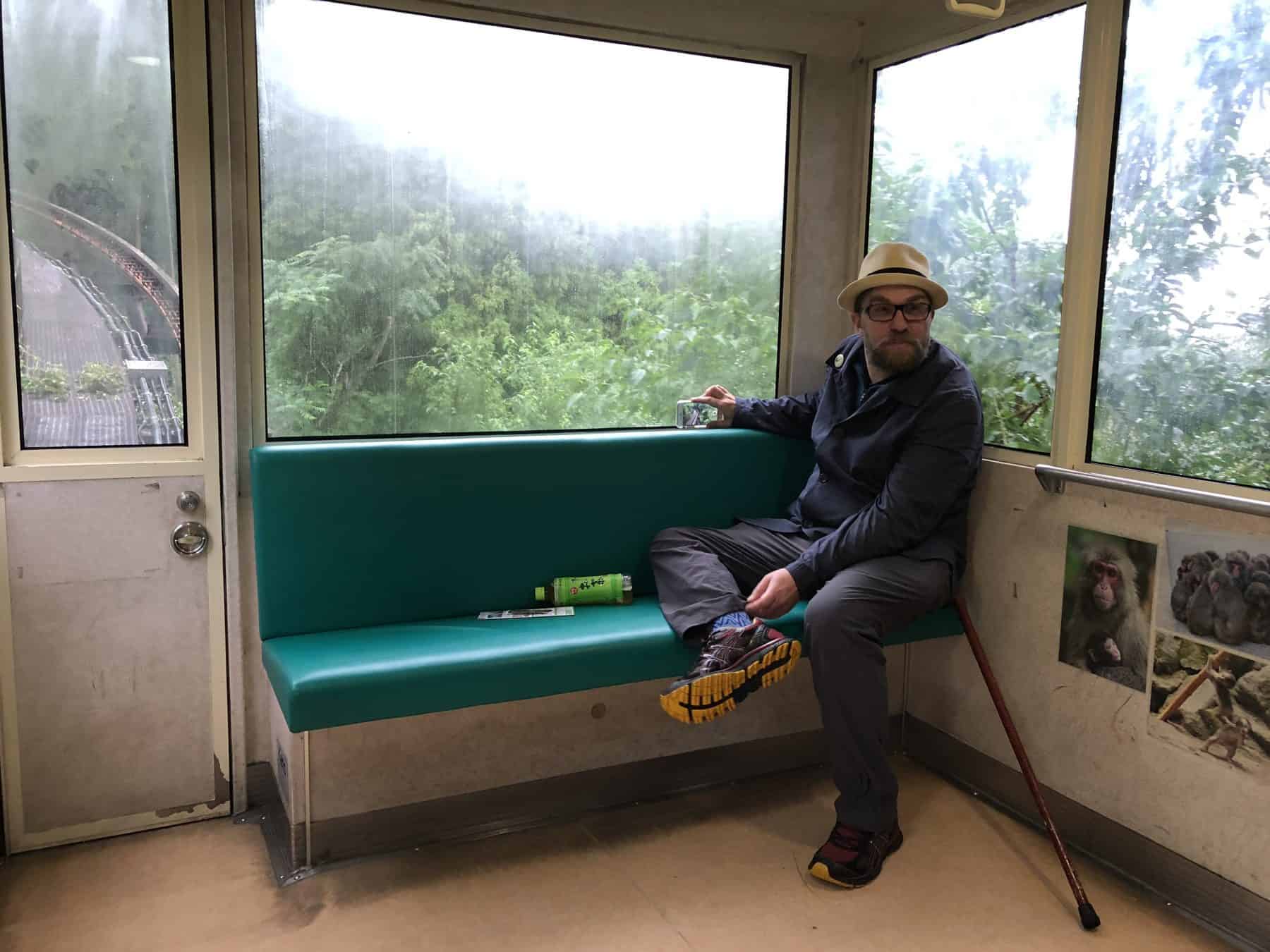 Take a (sped up) ride up Takisakiyama single track funicular train dealio in Oita, Japan (near Beppu Onsen in Kyushu) with monkeys frolicking on the tracks. Also, a painting (by me) of the funciular (or funiculaire if you prefer) in action.