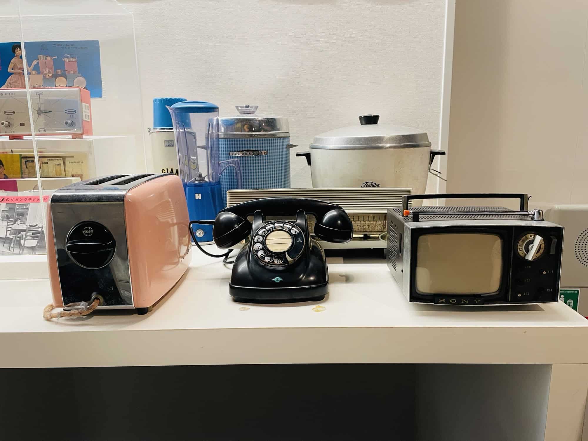 boat building woodwork hand tools, steam ship posters and various models of microscopic organisms came TVs, many TVs, playing newsreels appropriate to their time of use, mostly Showa times
