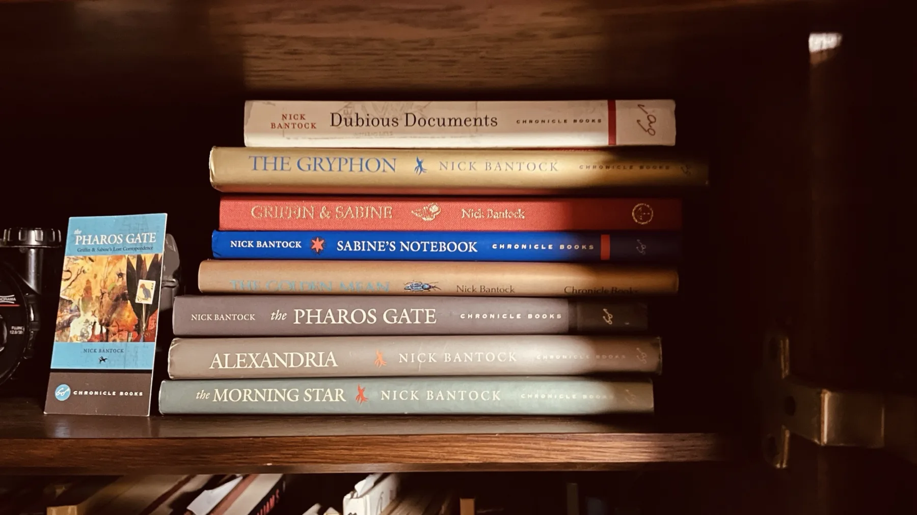 But, there’s a smattering of other folks scattered around the country who find themselves in similar circumstances of being “the neighborhood foreigner” and interested in art, music, nature, the sublime, creativity, etc. so: with this in mind, I gathered up nine used copies of Nick Bantock (who’s sort of become my mentor whether he knows it or not), epistolary literature, book “Griffin and Sabine” the first of the first trilogy, and there was another trilogy and many other books by, managed to find reasonably priced used copies of this one which kicks off the series.