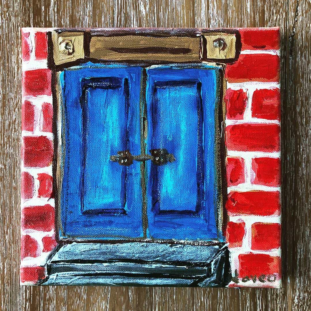 Blue Door (Nusa Ceningan) / acrylic with oil pastel “Do you ever try to open these doors that you see?“ she asked. “Only the ones that are locked,“ I replied. Blue Door (Nusa Ceningan) acrylic with oil pastel on canvas 2019 Tags: acrylic, art, blue door, indonesia, mixed media, painting, story