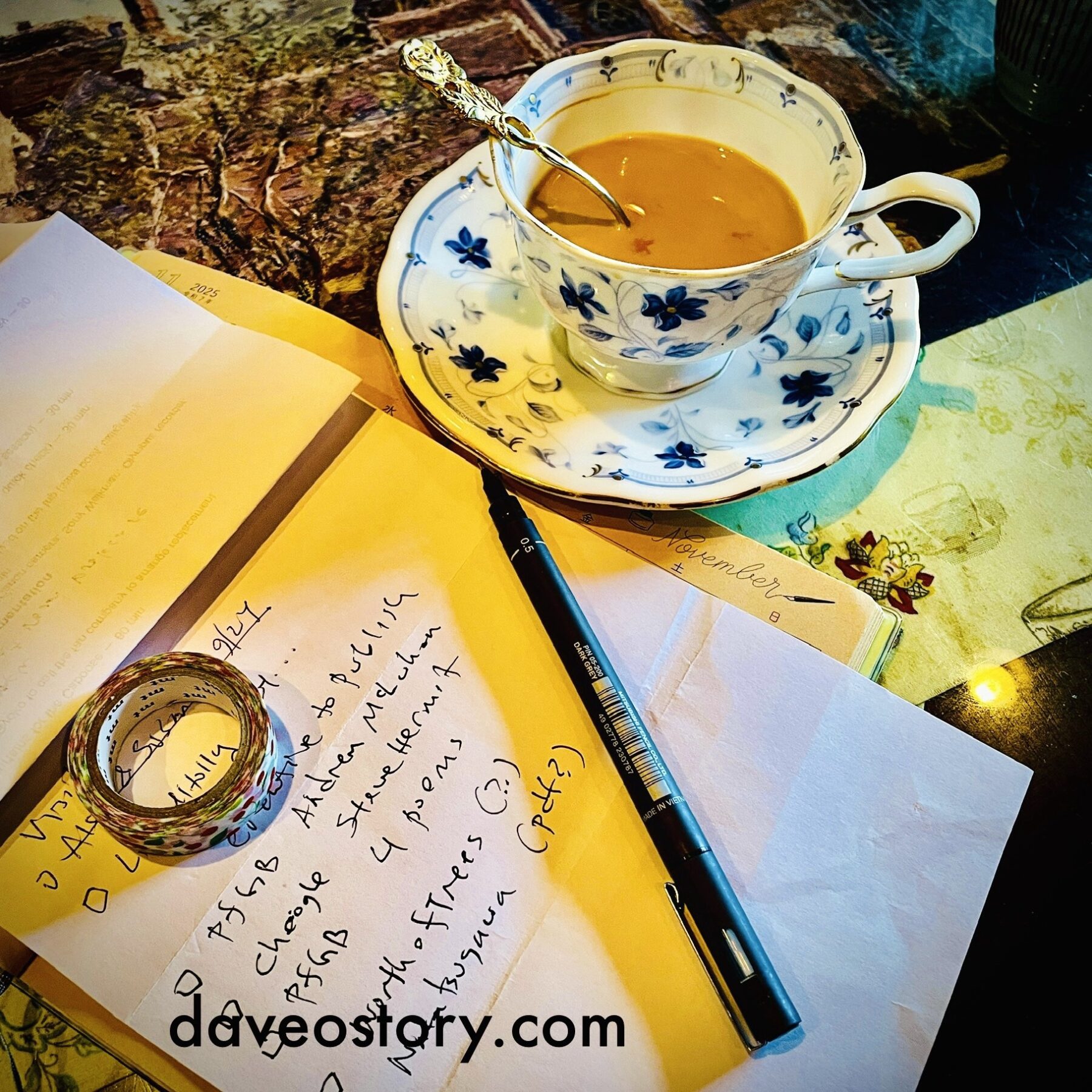 Sometimes lists of creative projects become poems in themselves, or else (at least) the scaffolding that holds the creative projects together – when written with a cup of tea, an inky pen at a kindly café somehow feels elevated, washi tape optional but handy for sealing letters