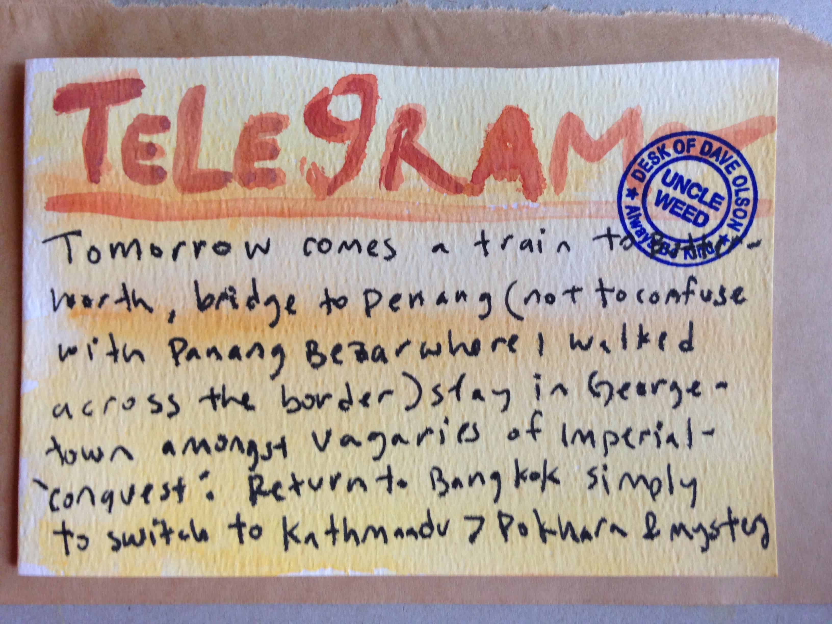 Telegrams from the Majestic Hotel: 1 (thunder and tropical rain)Telegrams from the Majestic Hotel: 2 (majestic hot toddy)Telegrams from the Majestic Hotel: 3 (roast beef sandwich)Telegrams from the Majestic Hotel: 4 (smoking jacket)Telegrams from the Majestic Hotel: 6 (comes a train)Telegrams from the Majestic Hotel: 5 (bi-focal barber))