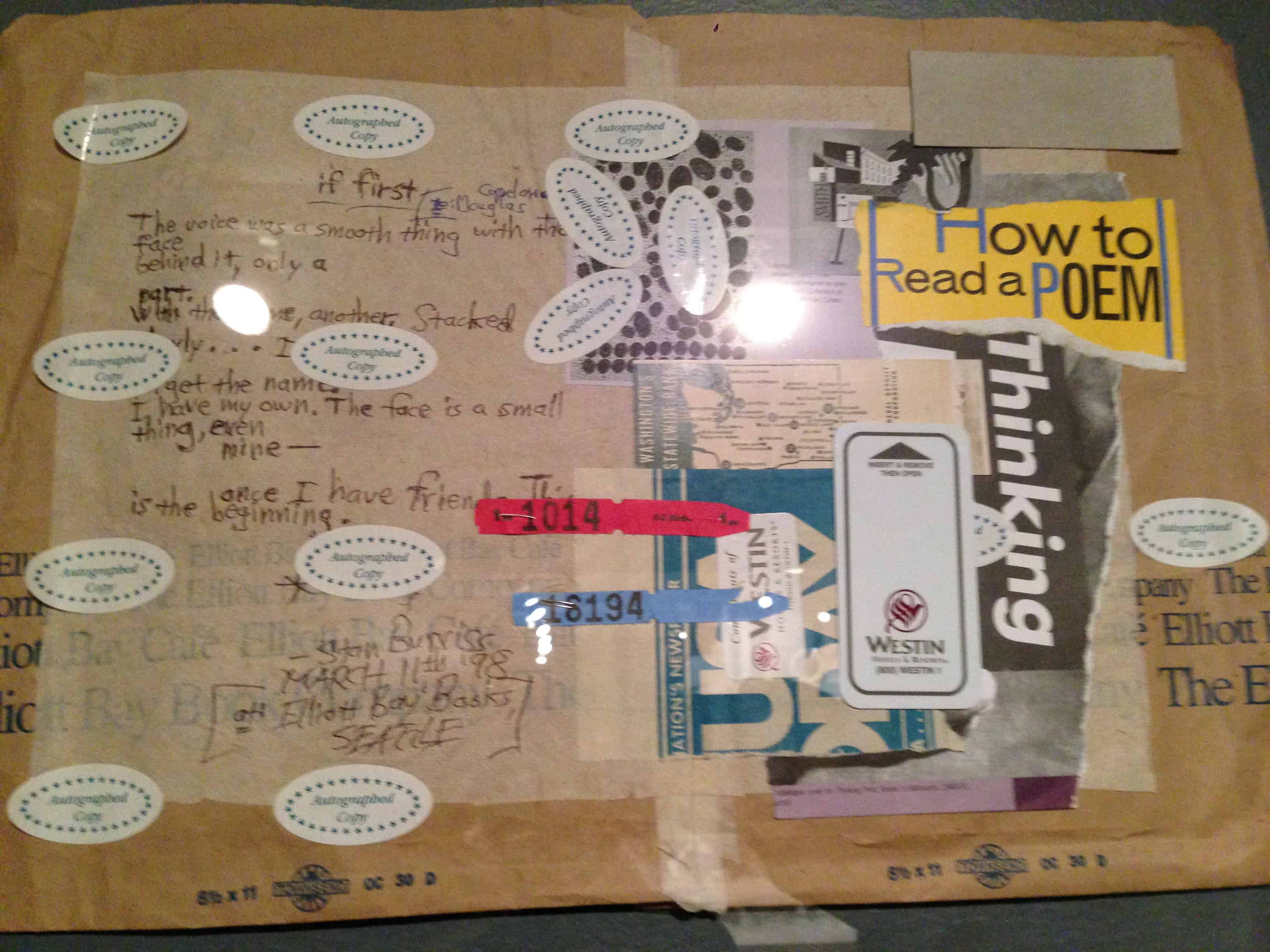 I especially enjoyed seeing his archival notebooks displayed as a “art piece” in their own right. Indeed, I am rather obsessive about my notebooks, journals, scrapbooks and have gathered and collected items – from ephemera to snippets of poetry to logistics – since I was a wee lad. I keep all of these dossiers inventoried in a storage locker in hopes one day they will be relevant or useful to someone else besides me. Actually, I don’t really care about the anyone else, I keep them for my own amusement and reference.