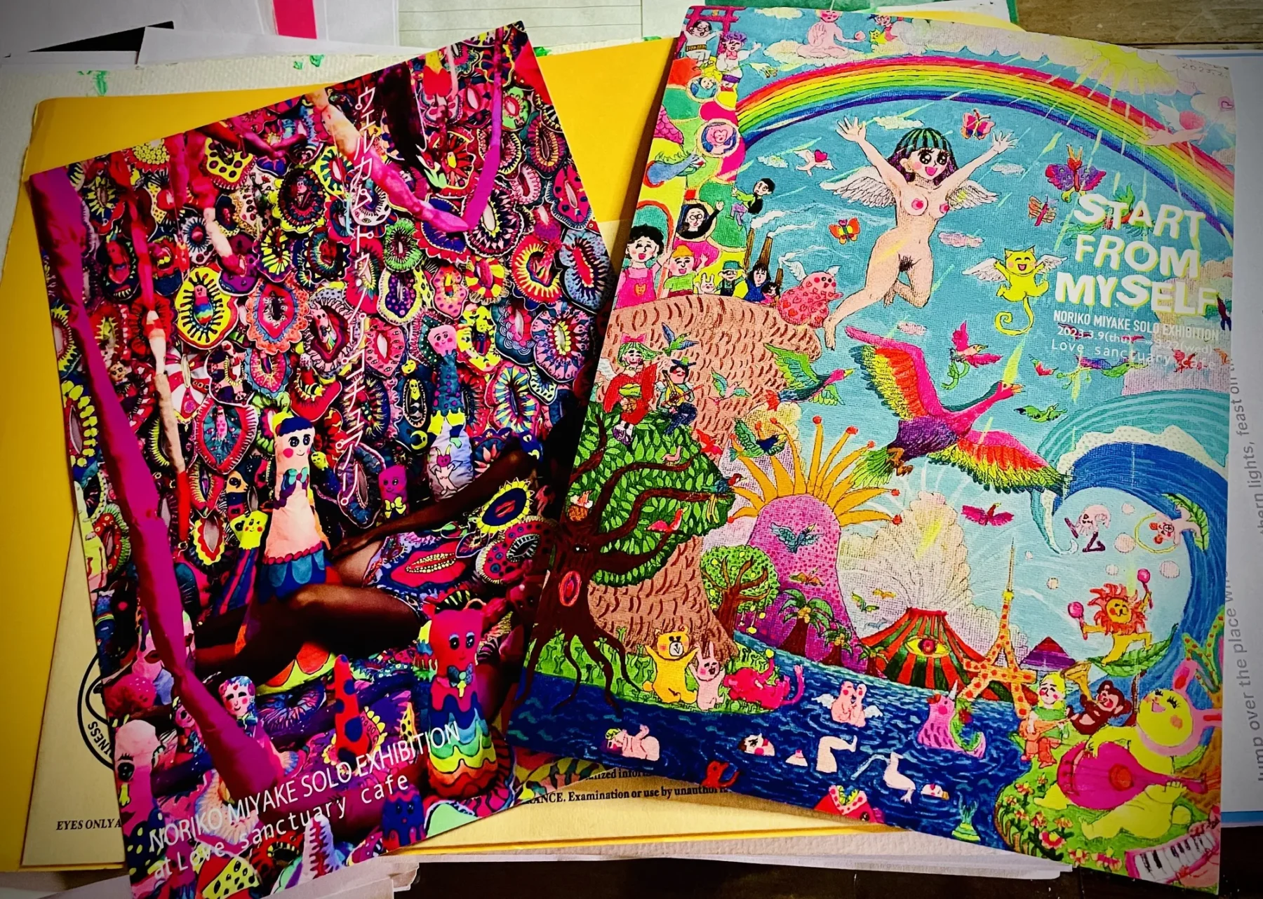Scrapbook’d: two exhibit cards from artist Noriko Miyake “start from myself” etc at Love Sanctuary Café