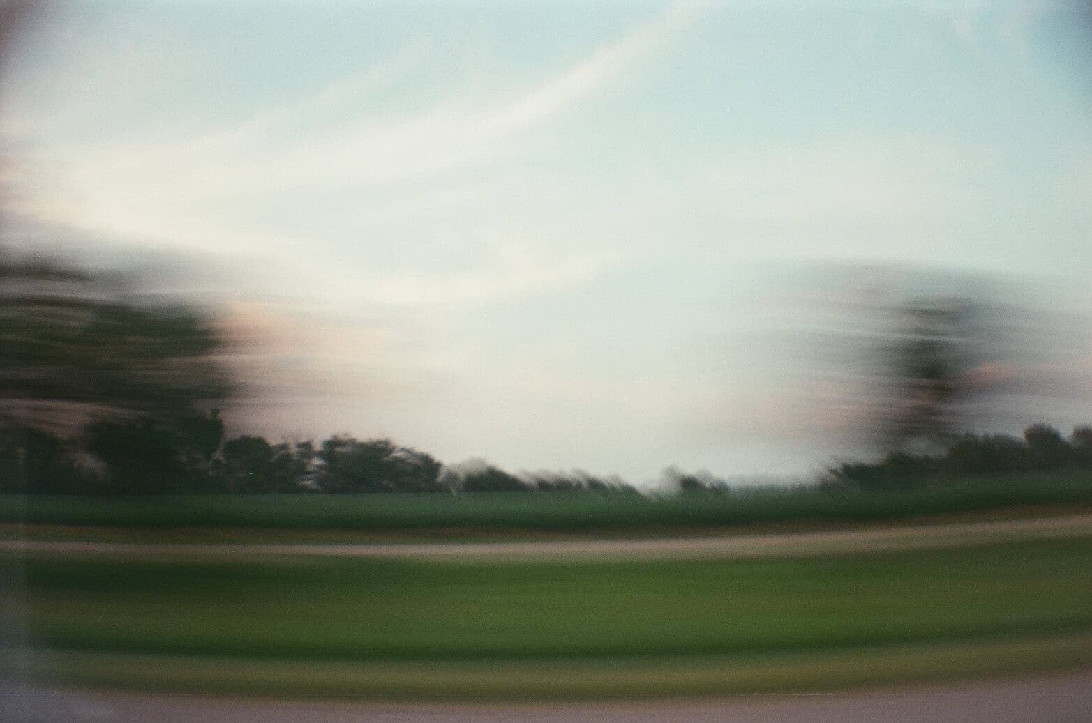 Driving across the United States mid-west region (Iowa and Nebraska, July 2015) I snapped photos with Lomo La Sardina (Sardine Can) camera loaded with expired 35mm film, directly out the moving vehicle window each :15 minutes for a full roll.