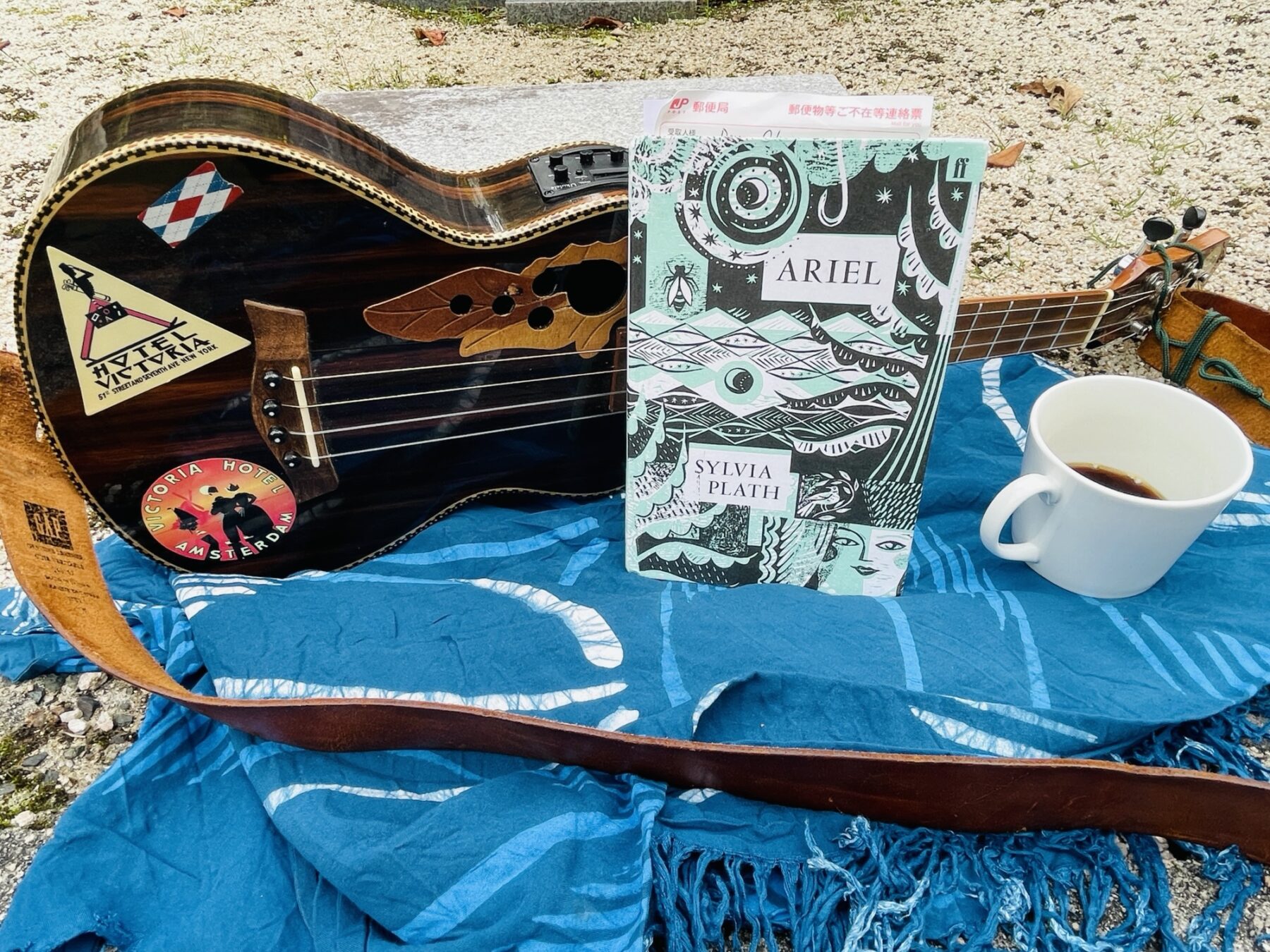 In memorial for my dear Auntie Mickey, who passed away recently in Logan, Utah – with ukulele in front of a Japanese grave site, surrounded by splendid mountains and brilliant women