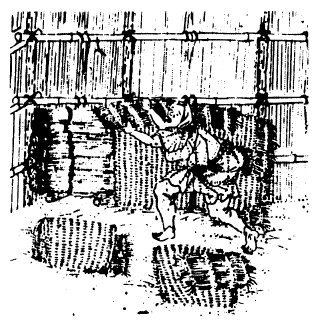 Zen (the meditative Taoist-influenced branch of Buddhism) was especially influenced by hemp. Samurai (elite warriors) and scholars who followed the subtle tenets of Zen express hemp’s inspiration in arts like haiku (short poems), aikido (a martial art), kyudo (archery) and chanoyu (tea ceremony). A well-known children’s adventure story tells about a technique used by ninja (warriors) to improve jumping skills. The student ninja plants a batch of hemp when he begins training and endeavors to leap over it every day. At first this is no challenge, but the hemp grows quickly everyday and so does the diligent ninja’s jumping ability. By the end of the season, the warrior can clear the 3-4 meter high hemp. This certainly attests as much for hemp’s vitality as the ninja’s ability (Mayuzumi 1996, Masuda 1996). The formal dress of the Samurai warriors was hempen as were the training clothes of meditators and martial artists. In kyudo (archery) the bow’s string is specifically hemp, which reflects a connection with the meditative practice of Zen as well as hemp’s toughness as a fiber (Mayuzumi 1996).