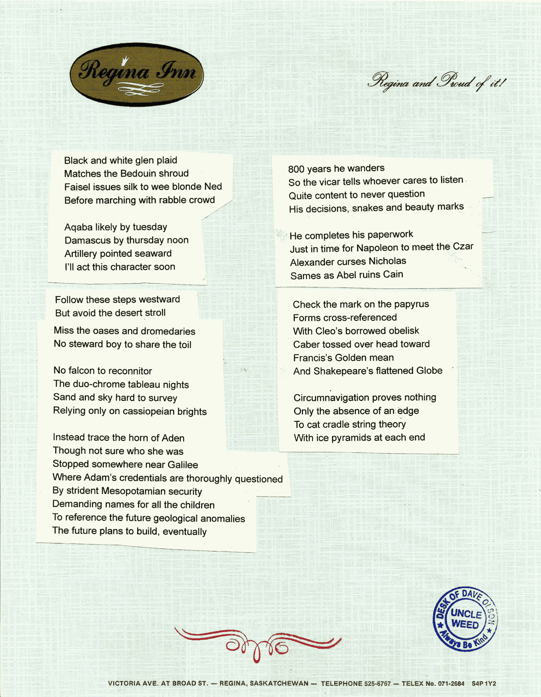 Bedouin Shroud – Items: Forgotten in Drawers Tags: bedouins, ephemera, freeverse, hotel, items forgotten, letterhead, mixed media, poems, poetry, Stationery