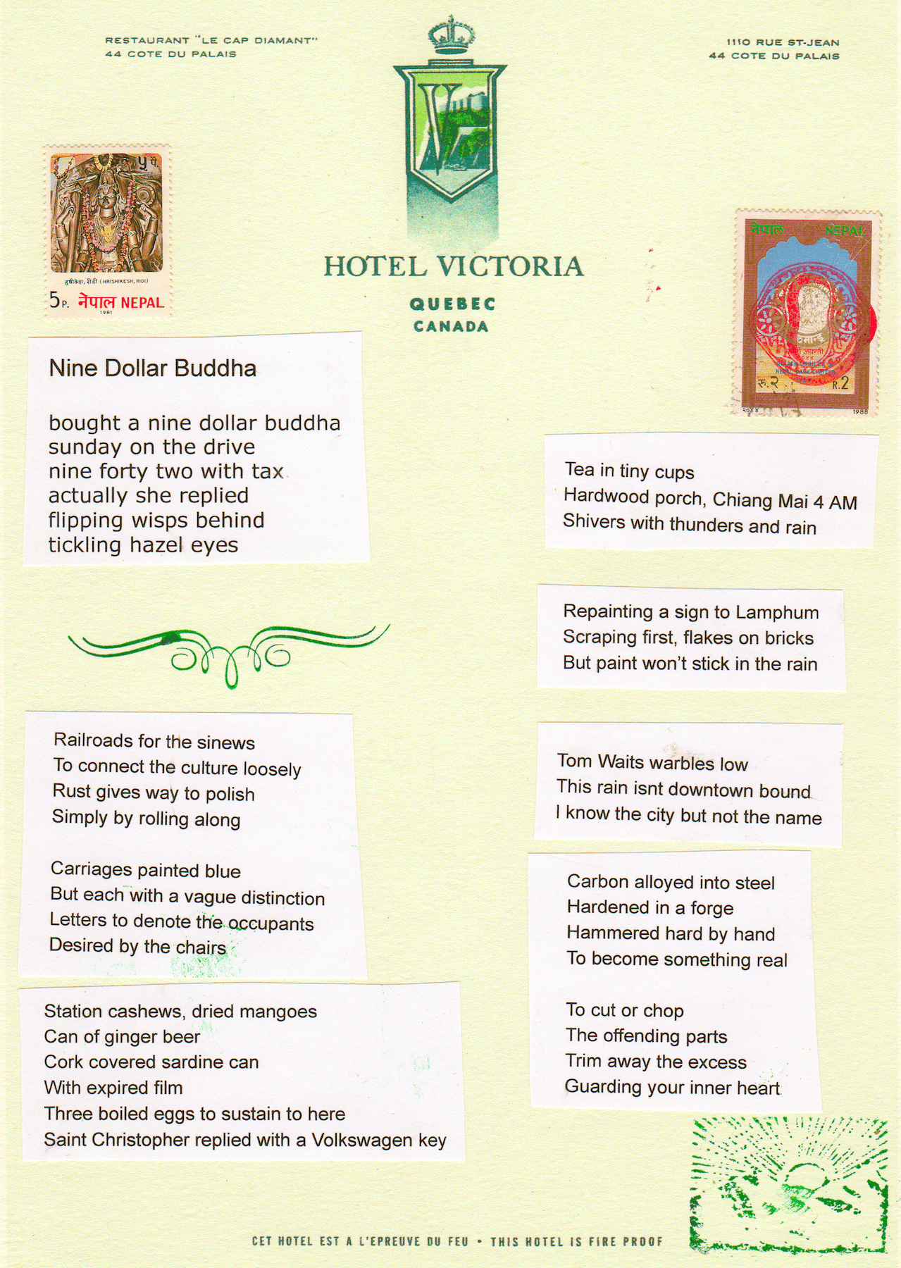 Nine Dollar Buddha – Items: Forgotten in Drawers Tags: ephemera, freeverse, hotel, items forgotten, letterhead, mixed media, poems, poetry, Stationery