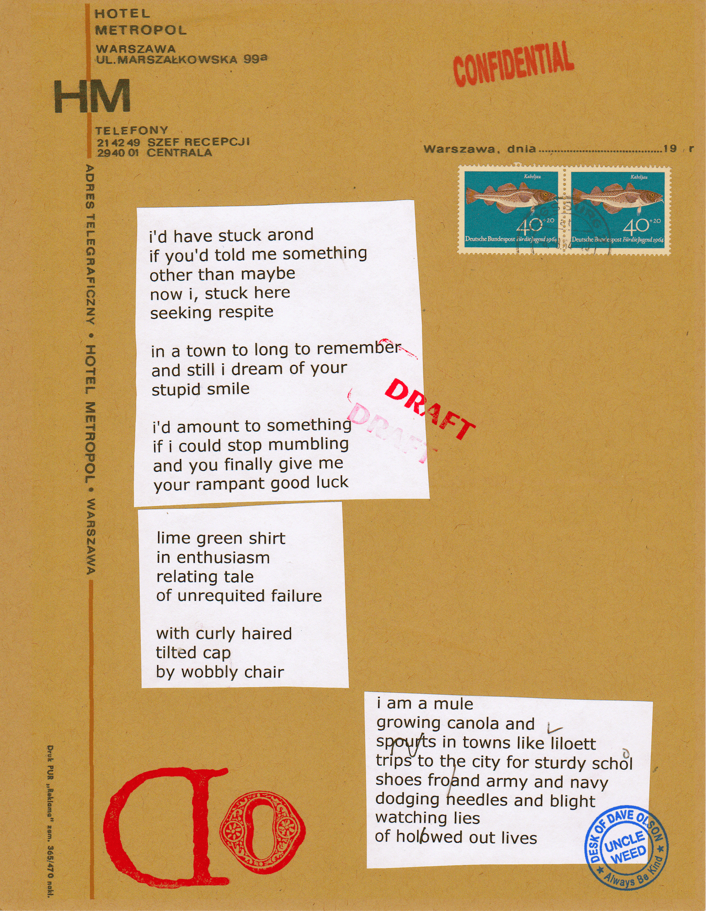 Stuck Around – Items: Forgotten in Drawers Tags: ephemera, freeverse, hotel, items forgotten, letterhead, mixed media, poems, poetry, Stationery
