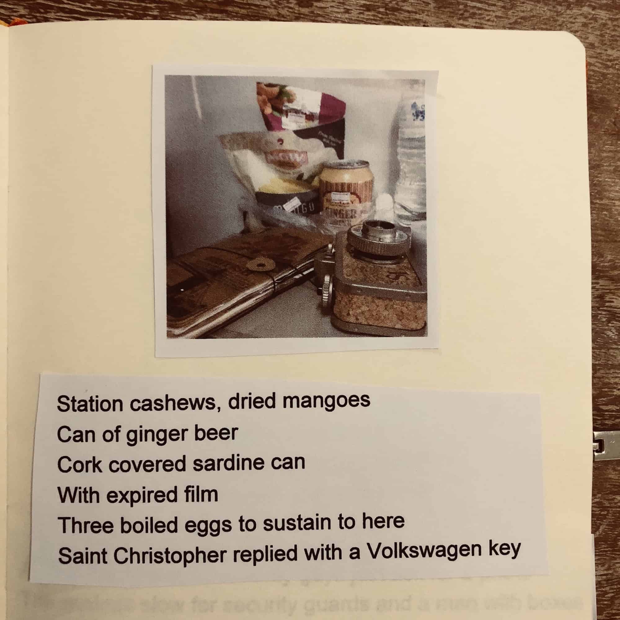 Station cashews, dried mangoes Can of ginger beer Cork covered sardine can With expired film Three boiled eggs to sustain to here Saint Christopher replied with a Volkswagen key ## from Towns and Trains, Sudden poems 2016-2018 Tags: freeverse, haiku, haikuish, poem, poetry, short, sudden, thailand, towns, towns and trains, trains, wandering