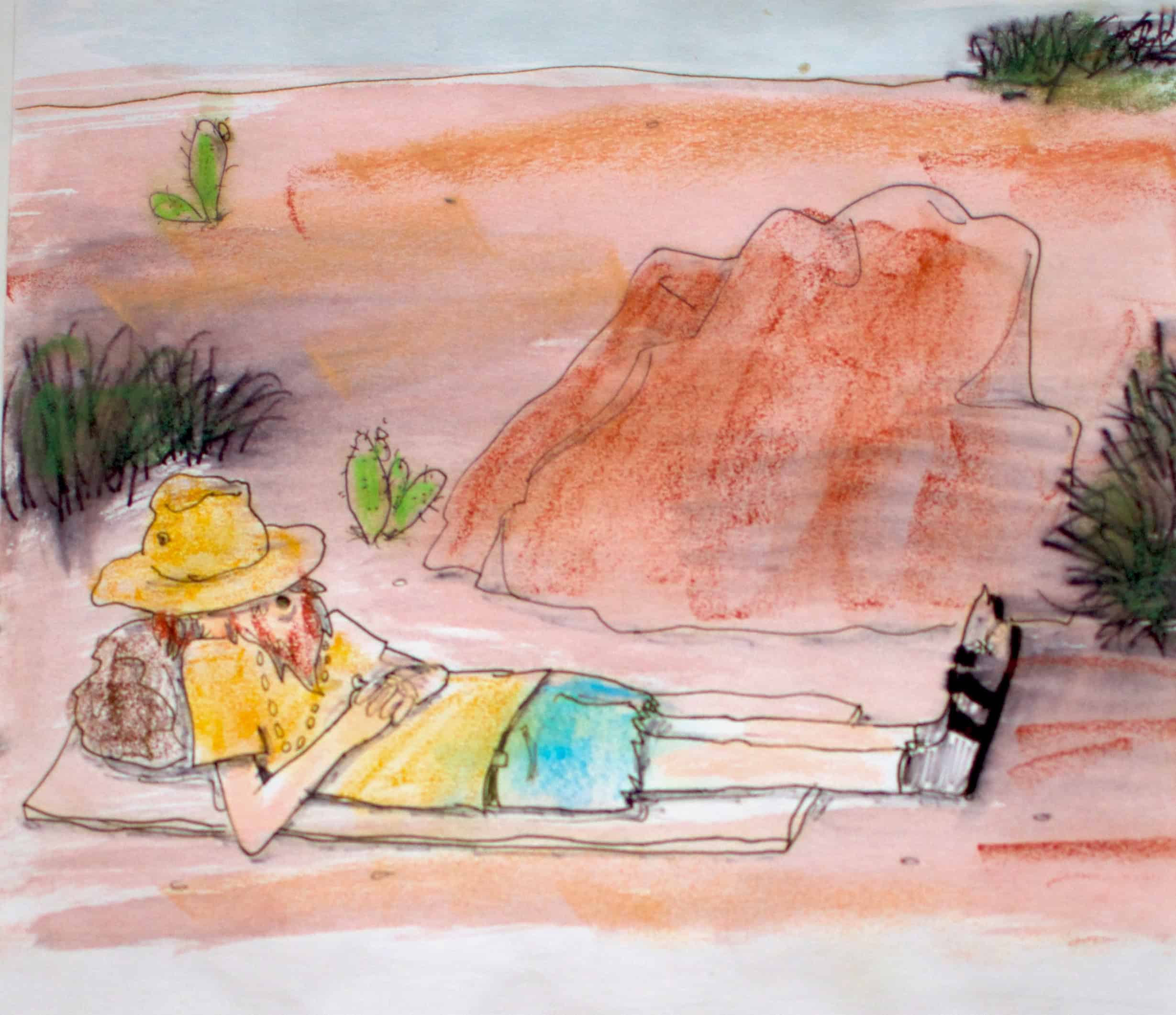 When they found a comfortable box canyon which met their needs, Uncle Weed kicked out some sand and threw down his bedroll. He flopped down, pulled his hat over his eyes and was asleep in no time.