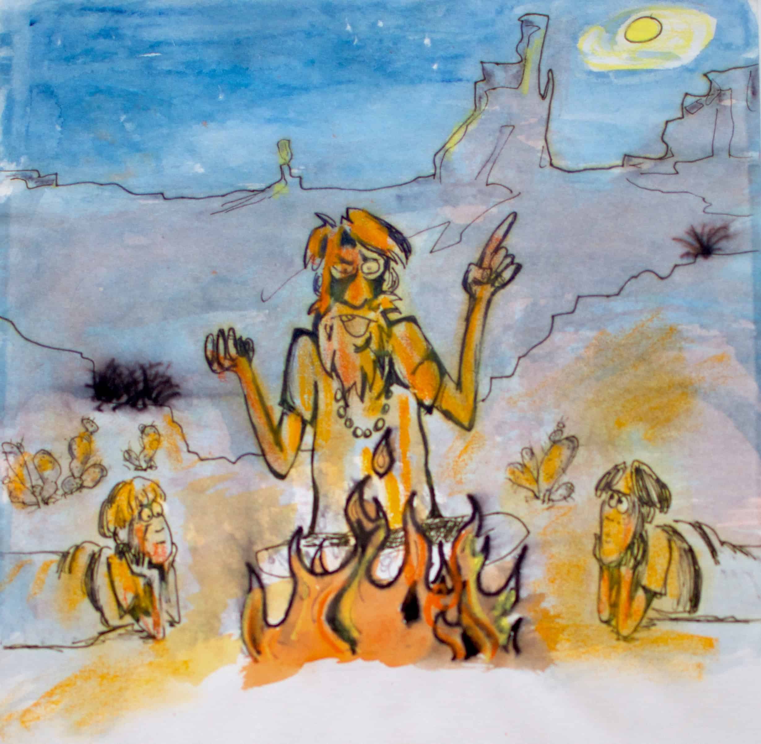They laid down, bellies full, beside their little fire and told stories. Bob and Otto told about the Arches and the cave they found while exploring. “Now you tell us a story, another good one,” the boys asked.