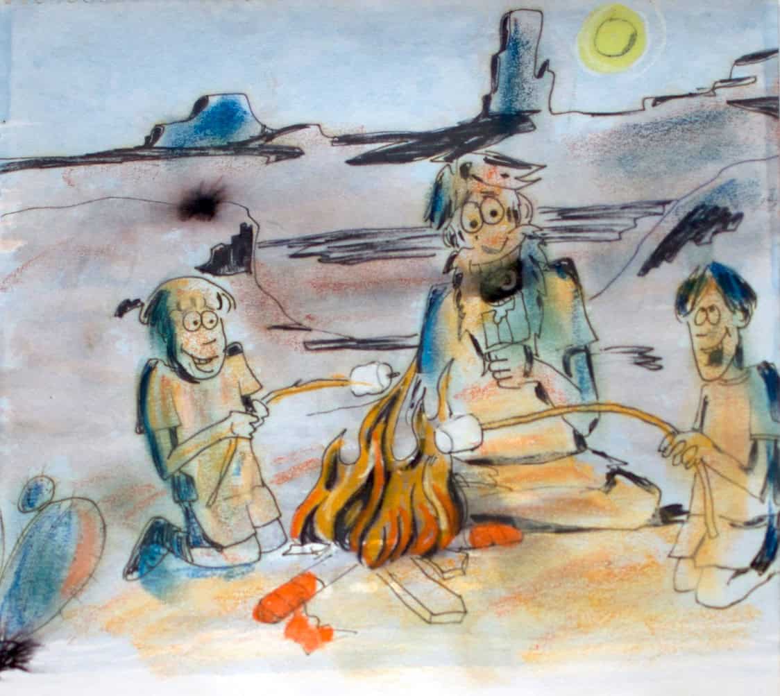 Then, under a sliver of moon, the three compadres sat around a little fire, eating creamsicles, roasting marshmallows, and talking. Talking about what they had seen, heard, smelled, touched, tasted, and thought that day.